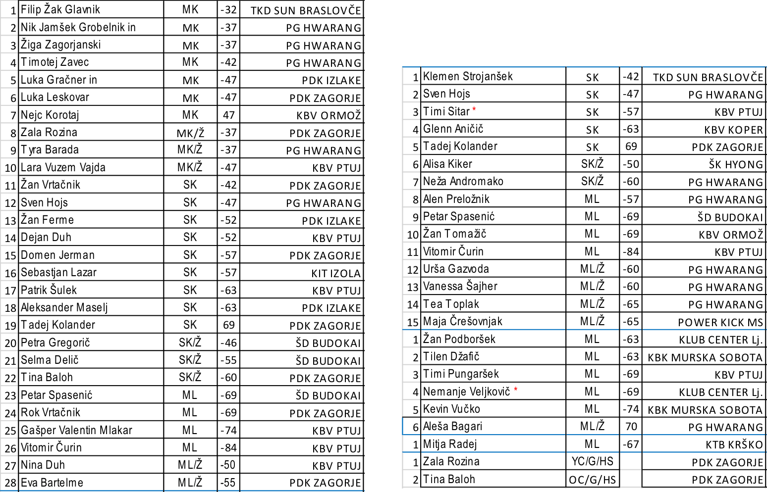 Prijava tekmovalcev