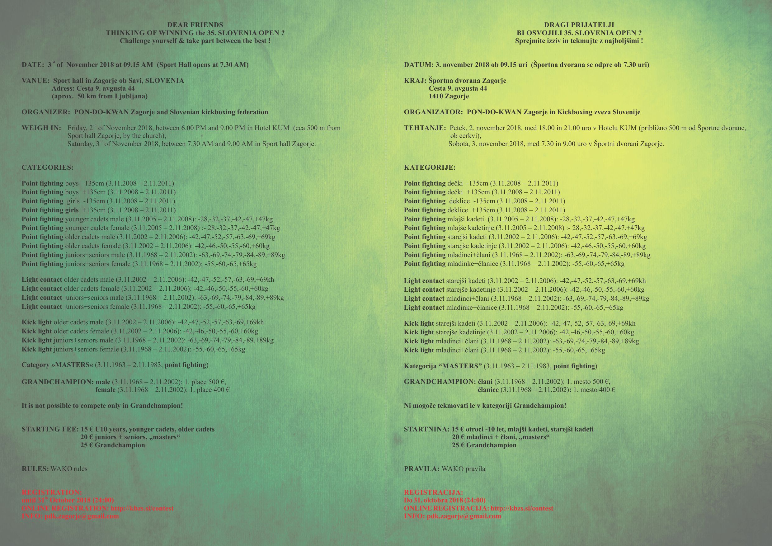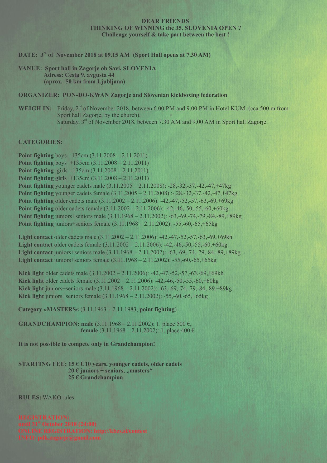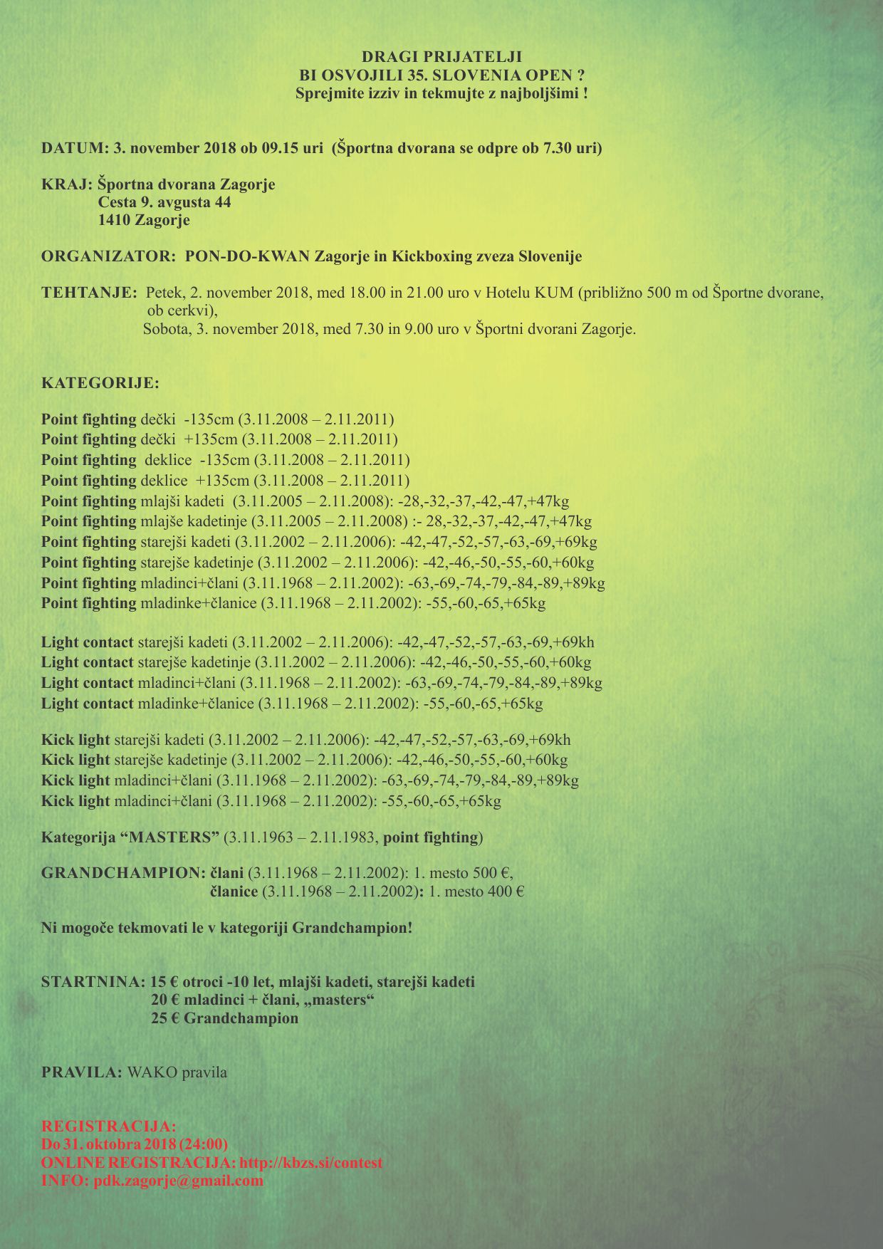 Prijave so odprte do 31.10.2018 (23:59). Če prek portala tekmujete prvič morate pred prijavo klub registrirati.